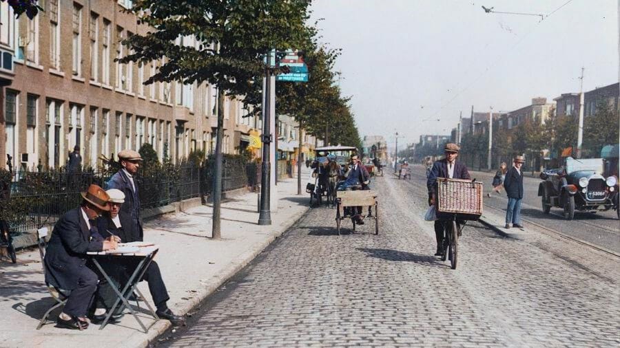 Foto: Verkeerstelling op de Rijswijkseweg, ter hoogte van nr. 475. Jozef en Anna woonden uiterst links op nr. 477