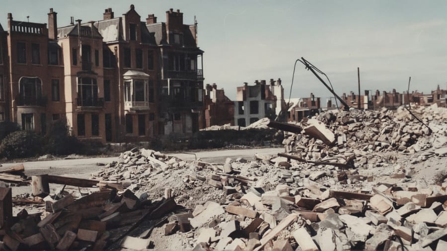 Foto: Oorlogsschade in de wijk Bezuidenhout na het geallieerde vergissingsbombardement van 3 maart 1945