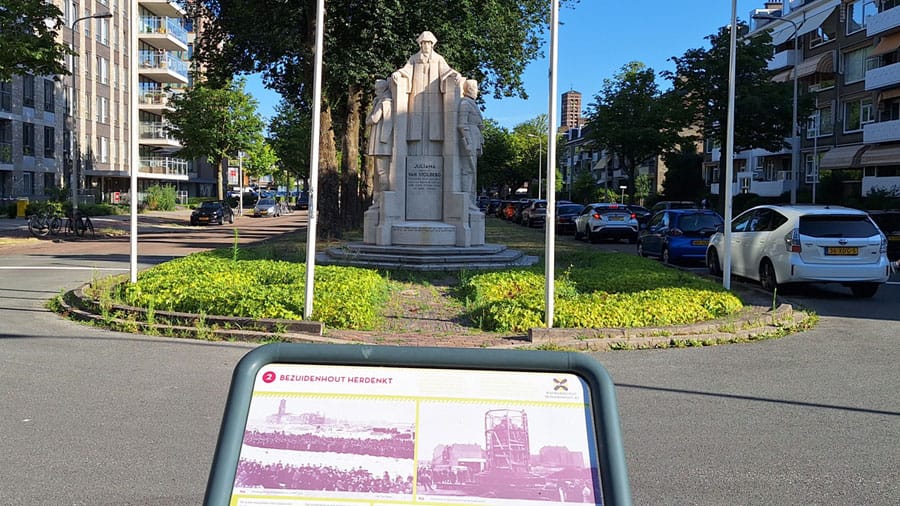 “Zag je de bommen vallen? Ze willen de V2’s van Adolf hebben, doch ze zijn er juist even te ver naast… Het Bezuidenhout is eraan gegaan. Is dat wat?”