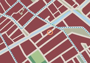 Onder: Kaart van Den Haag uit 1910 met daarop nog duidelijk het plein en brug over de gracht zichtbaar. De garage van Willem was gevestigd in de oranje cirkel