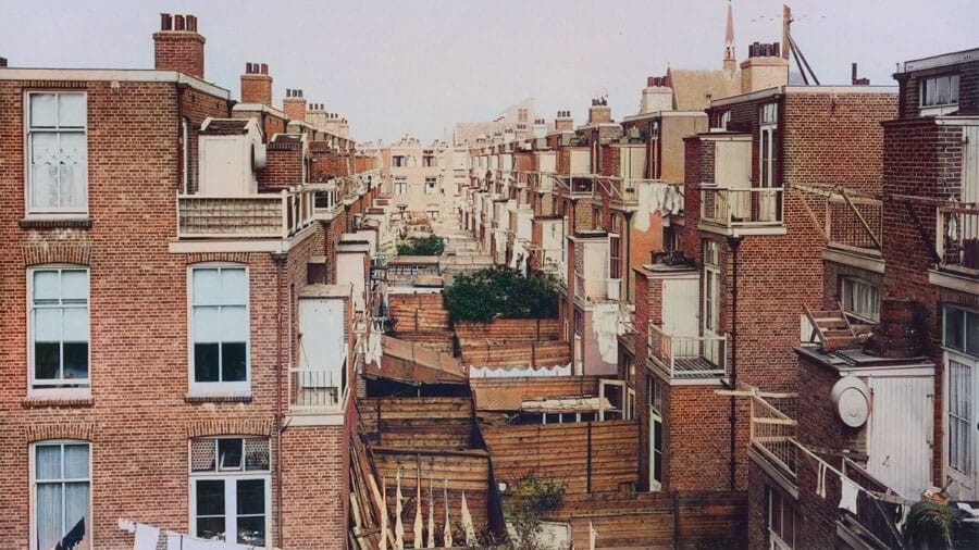 Foto: Binnenterrein met uitbouwen tussen de Van Ostadestraat (links midden nr. 632) en de Stortenbekerstraat