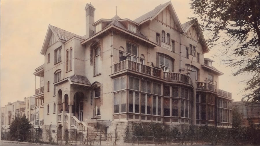 Jozef Rulof wandelroute Den Haag 38. Scheveningseweg 82 “Lijn acht zette hem midden voor de deur van de villa. Hij leest al: Pension… uitzending van diners” Foto: Scheveningseweg 80-82, hoek Frankenslag arrow_back VORIGE TERUG NAAR WANDELROUTE VOLGENDEarrow_back
