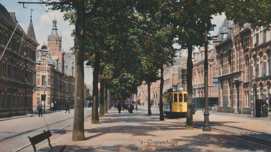 Foto: Ansichtkaart Laan van Meerdervoort, ter hoogte van de Tasmanstraat (eerste zijstraat links)