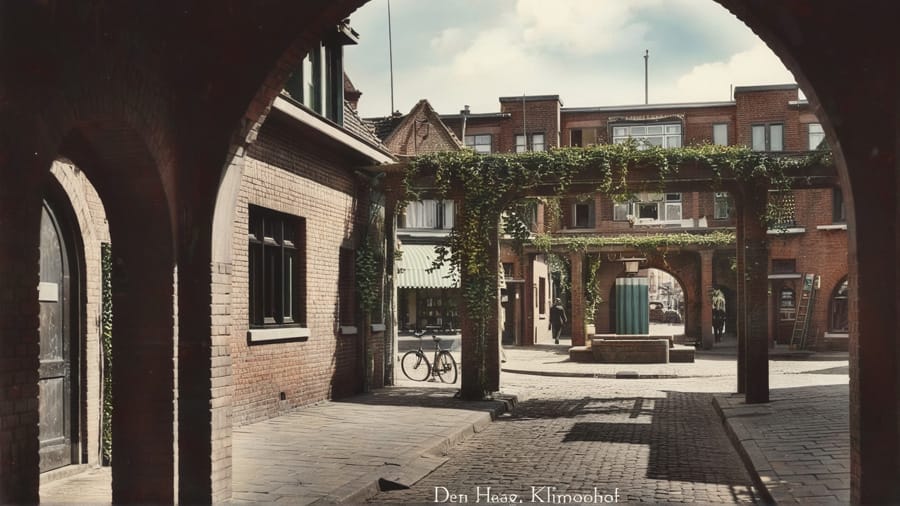 Foto: Ansichtkaart Klimophof gezien naar het Goudenregenplein