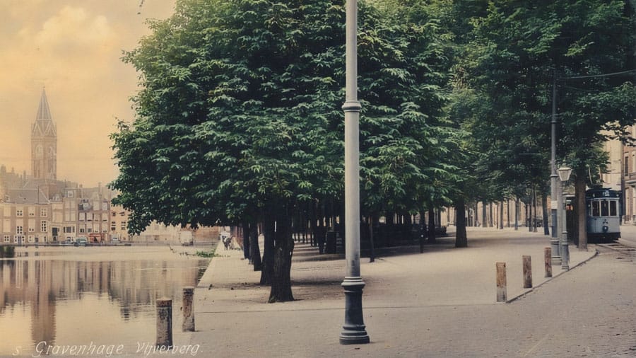 “Op het mooiste plekje van Den Haag zet hij zich neer om te studeren. Heerlijk zit hij daar, bij de eendjes en bij de zwanen, de Vijverberg is bekend”