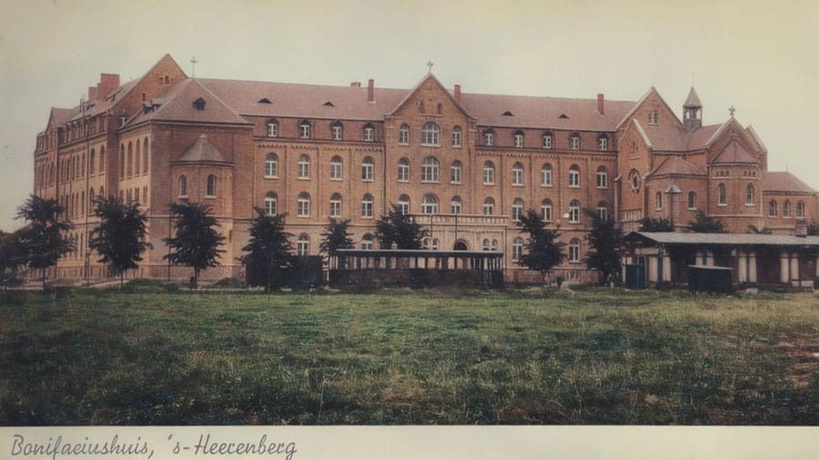 “Als deze het machtige klooster ziet waarin de paters leven, komt hij niet uit gekeken. ‘Wat is dat voor ’n groot huus, Bennad?’ ‘Das it klooster. Hie’r lève de paotes. Giij wèt wel, die kééls, die altied de Grintweg opsloffe en naor it bos gaon, die met die zwatte pakke aan”