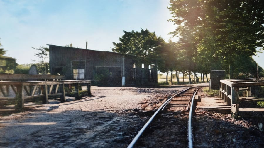 Foto: De ‘Oude grens’ met op de voorgrond de houten ’s Heerenbergse brug over de Wetering, ook wel bekend als het grenskanaal. De rails zijn van de net aangelegde tramweg Zutphen-Emmerik.