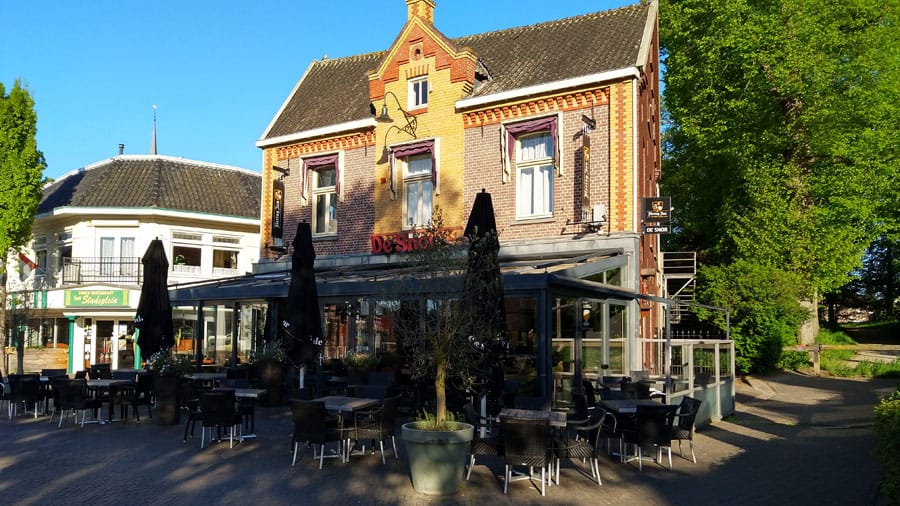 Foto: Achtereenvolgens zichtbaar de kerk, Café-zaal Schuurman, en de ‘Sociëteit’