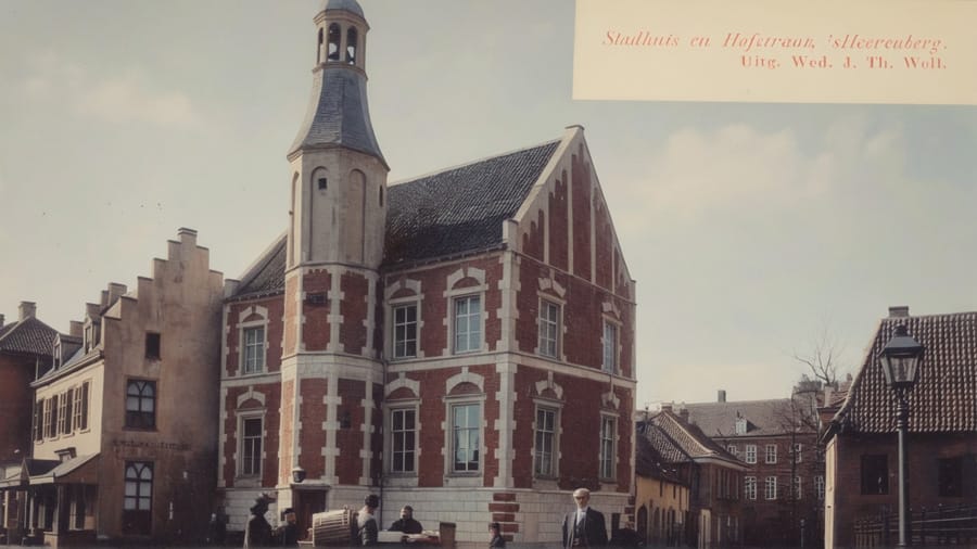 Foto: Ansichtkaart van het stadhuis in 1908