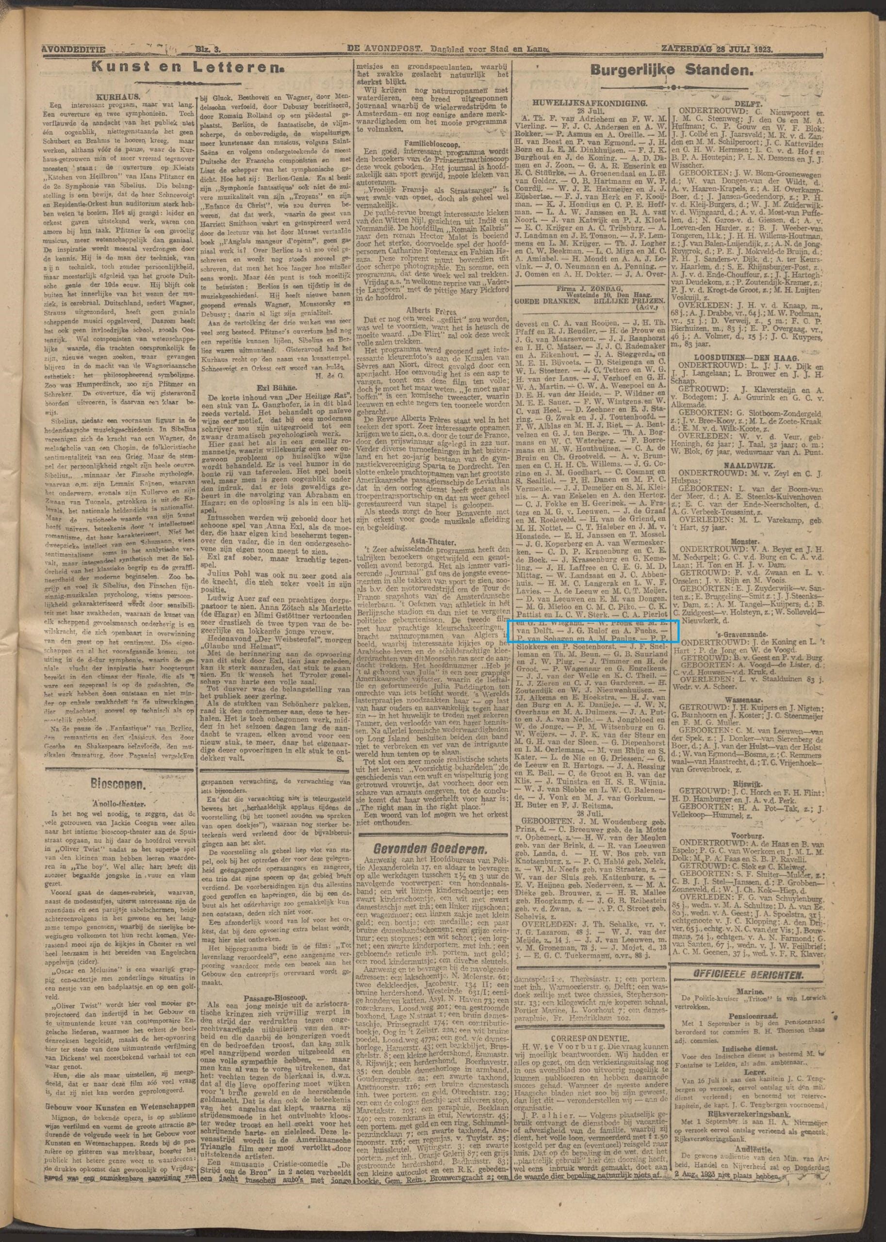 (De Avondpost 28/07/1923)