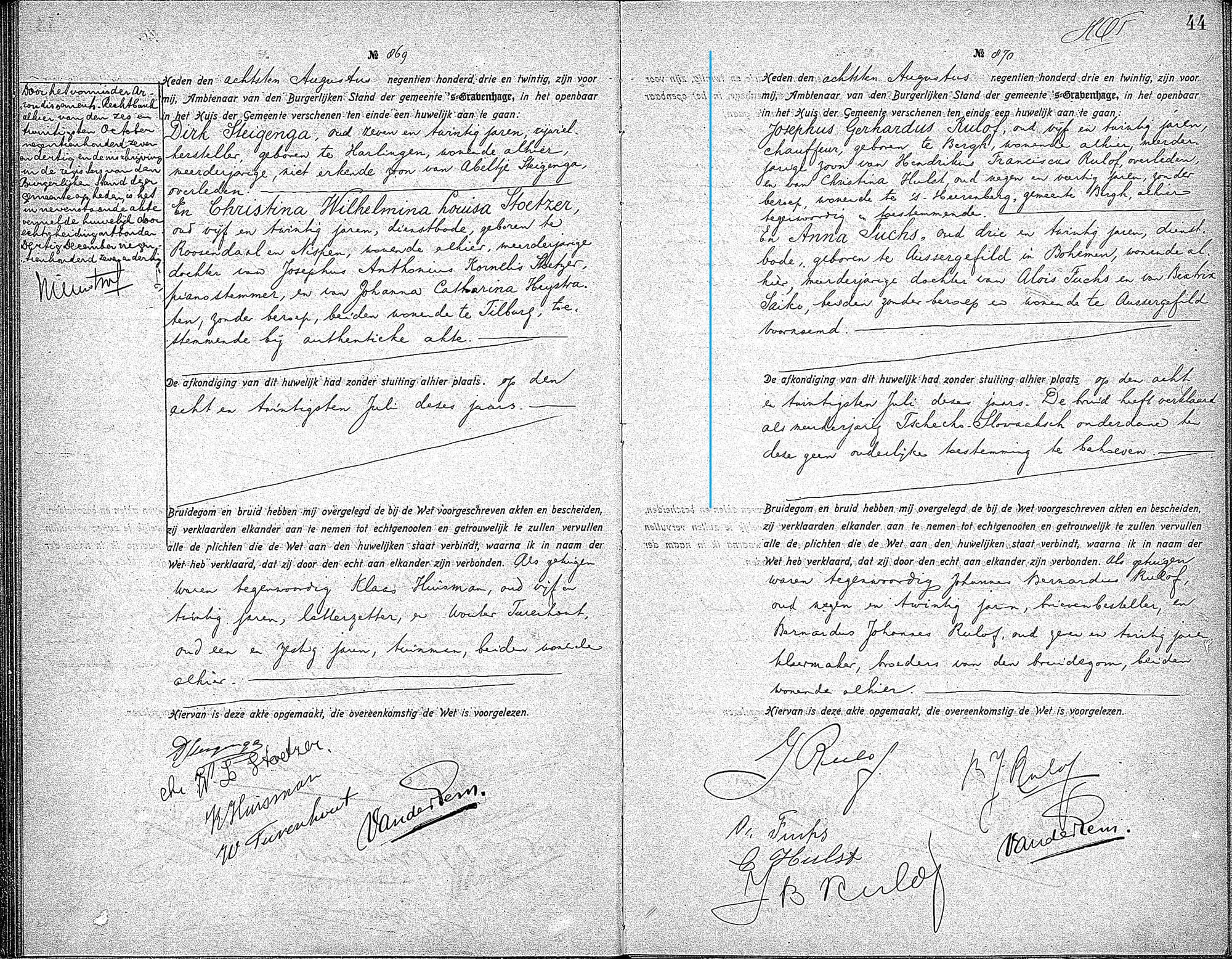 (Haags Gemeentearchief 08/08/1923)