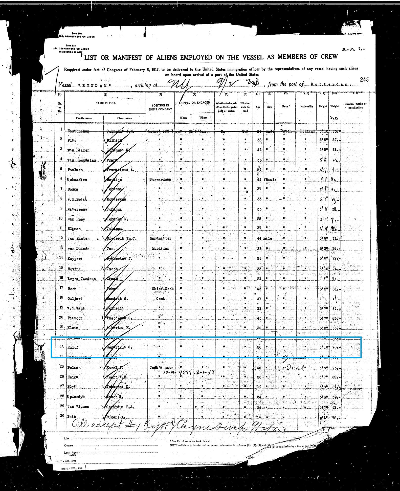 (Ellis Island Archive 02/09/1923)