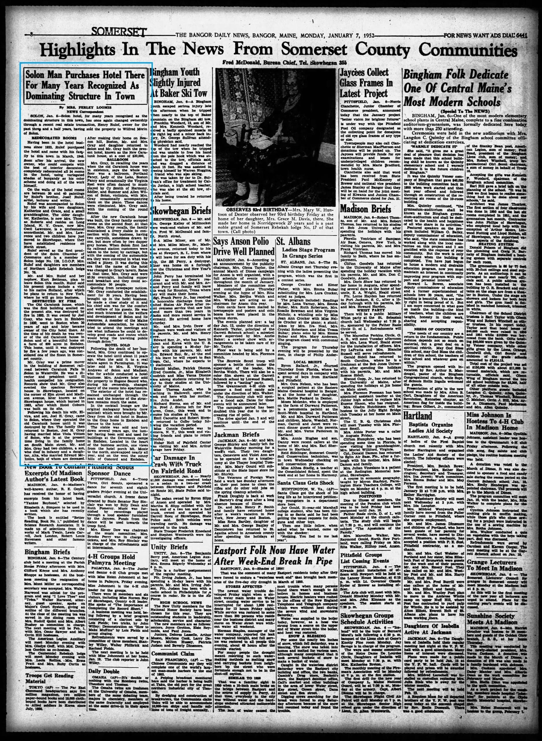 (The Bangor Daily News 07/01/1952)
