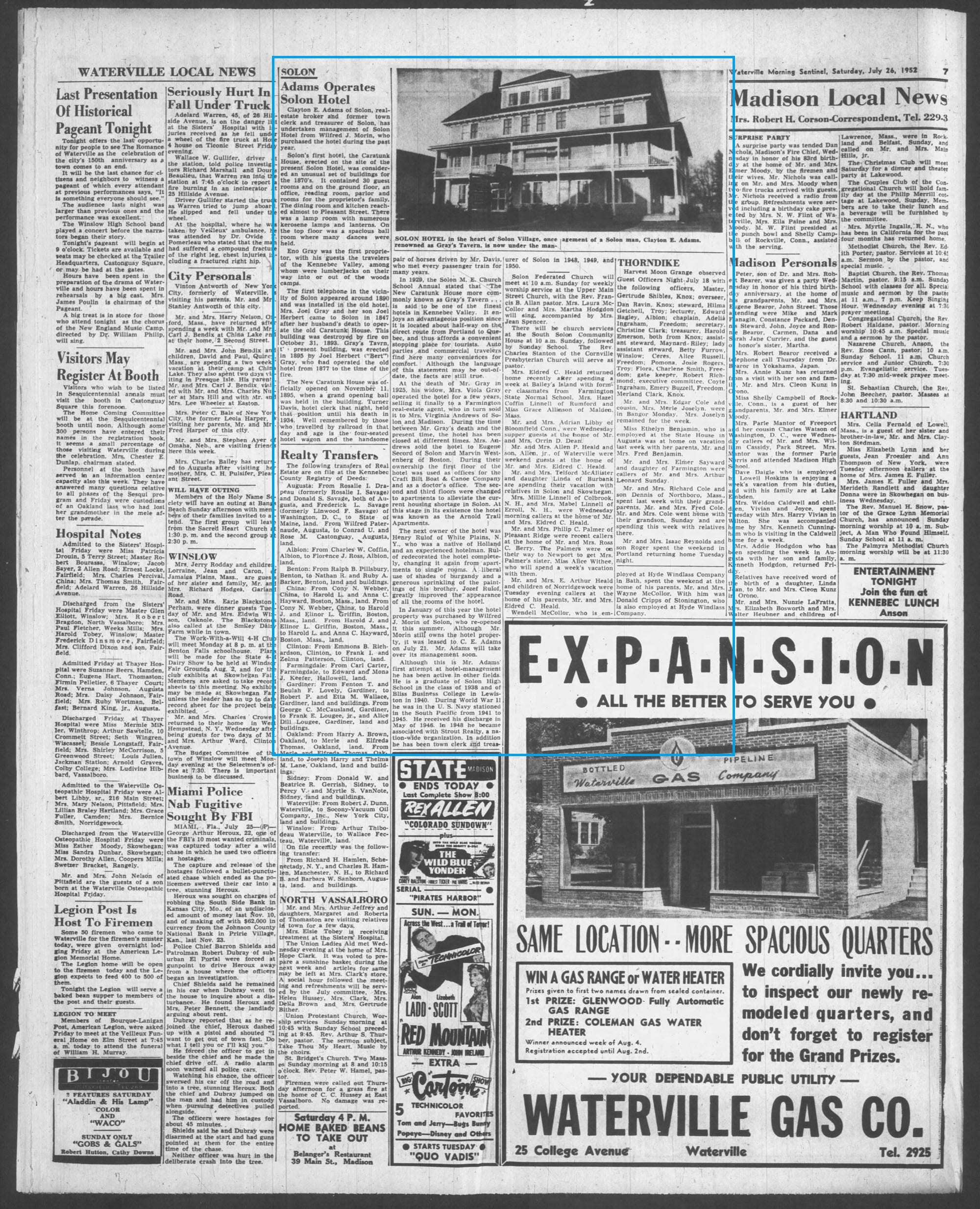 (Waterville Morning Sentinel 26/07/1952)