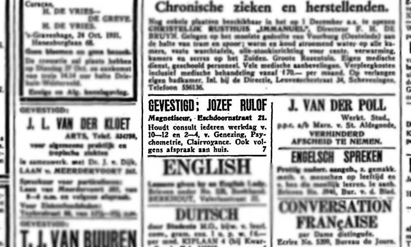 Jozef Rulof is in 1920 naar Den Haag gekomen.